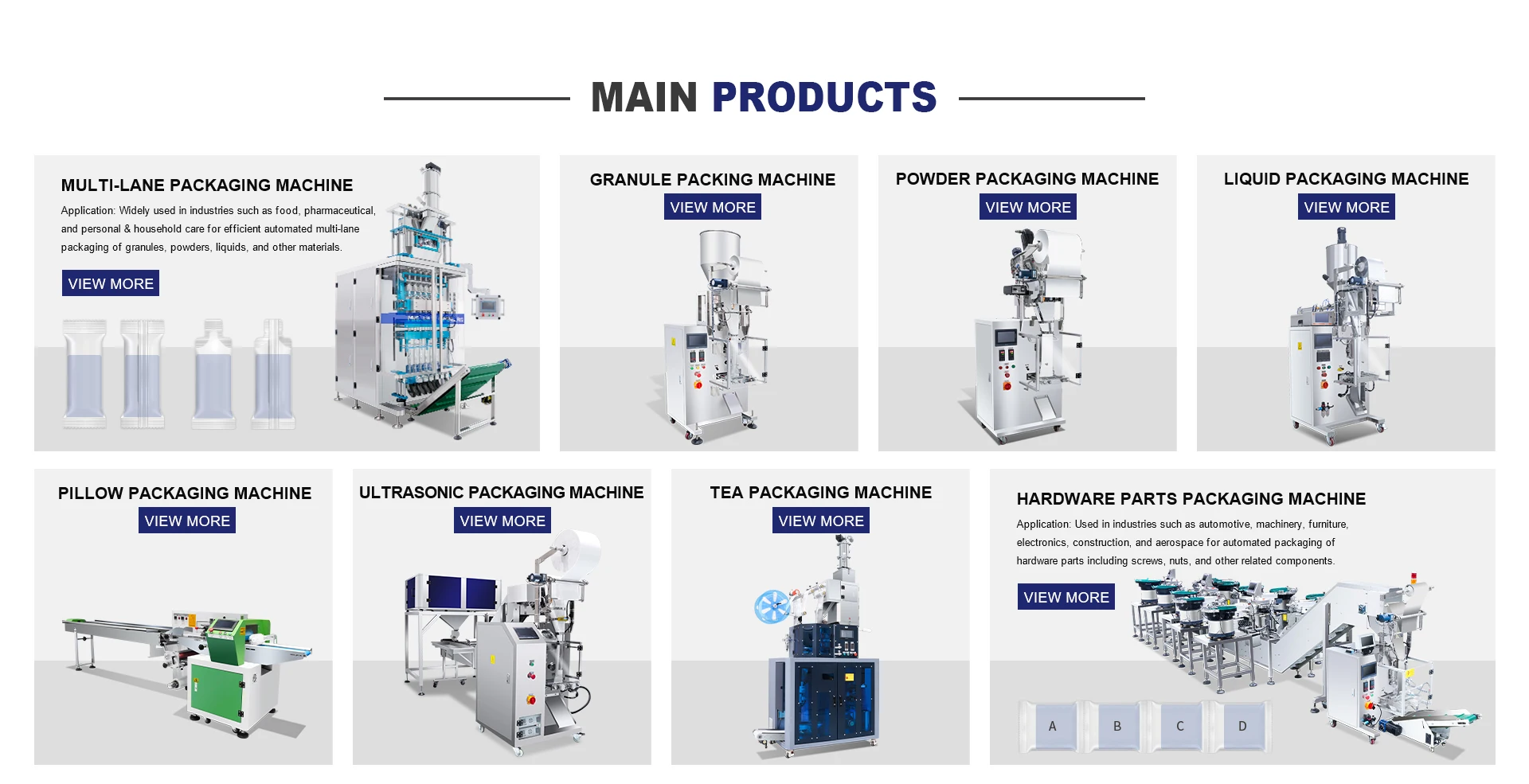Productos principales:Máquina de envasado de polvo, máquina de envasado de té, máquina de envasado de tornillo, máquina de envasado de líquidos, máquina de envasado de gránulos